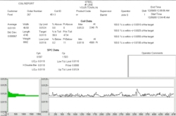 thickness, deviation, upper and lower tolerance limits, shutter status,